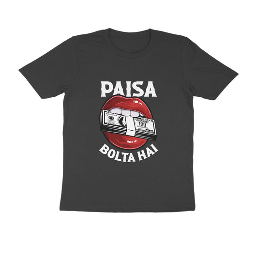 Men's Black Paisa Bolta Hai Graphic Printed T-shirt