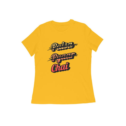 Women's Golden Yellow Paisa Pyaar Chai Graphic Printed T-shirt